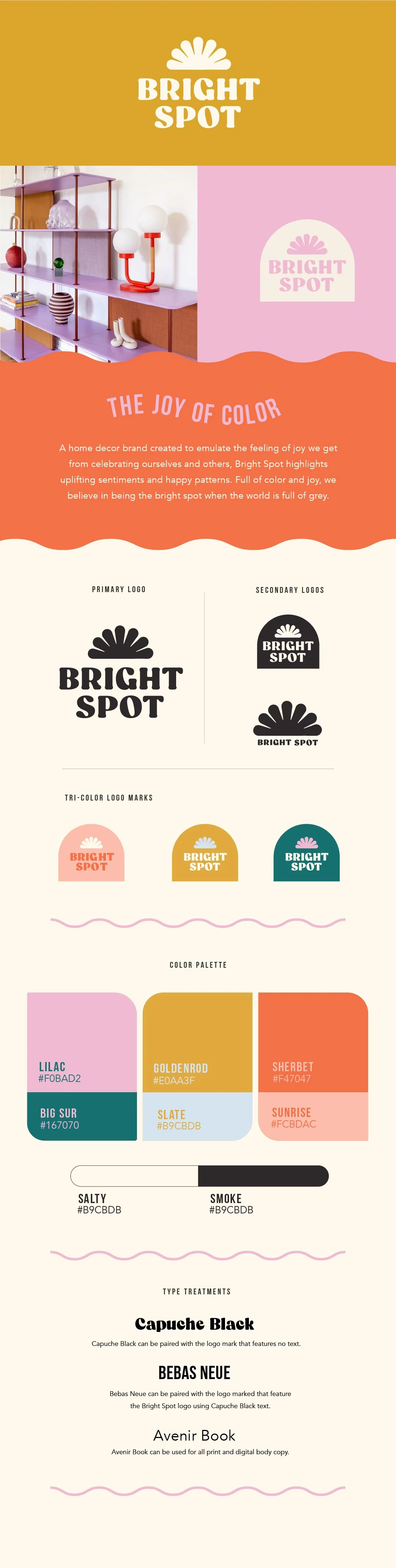 The Bright Spot was a concept brand our team pitched to a big-box retailer as a solution for a fresh in-house line. Our goal was to create a full package, from multiple merchandising options to the full line of product.