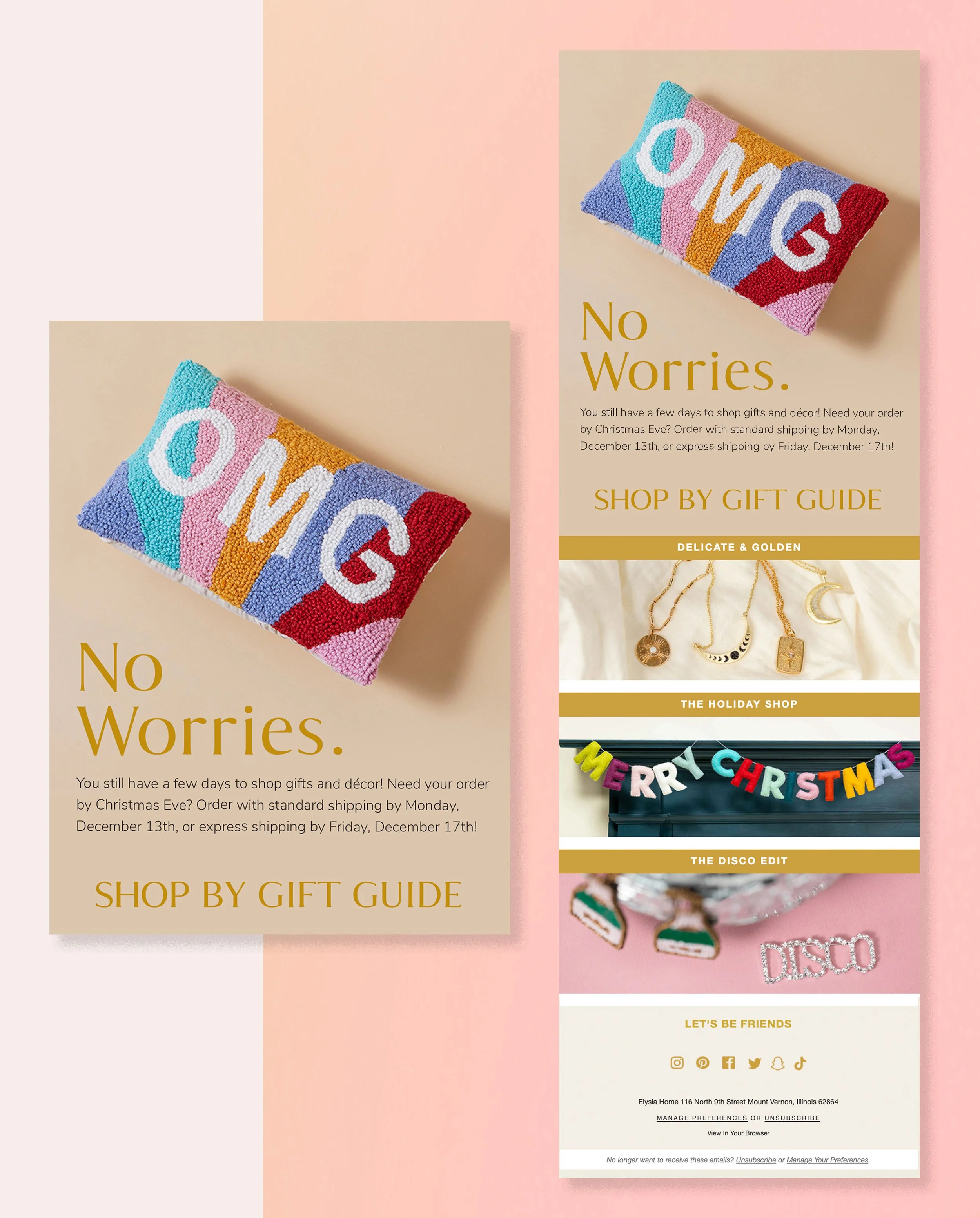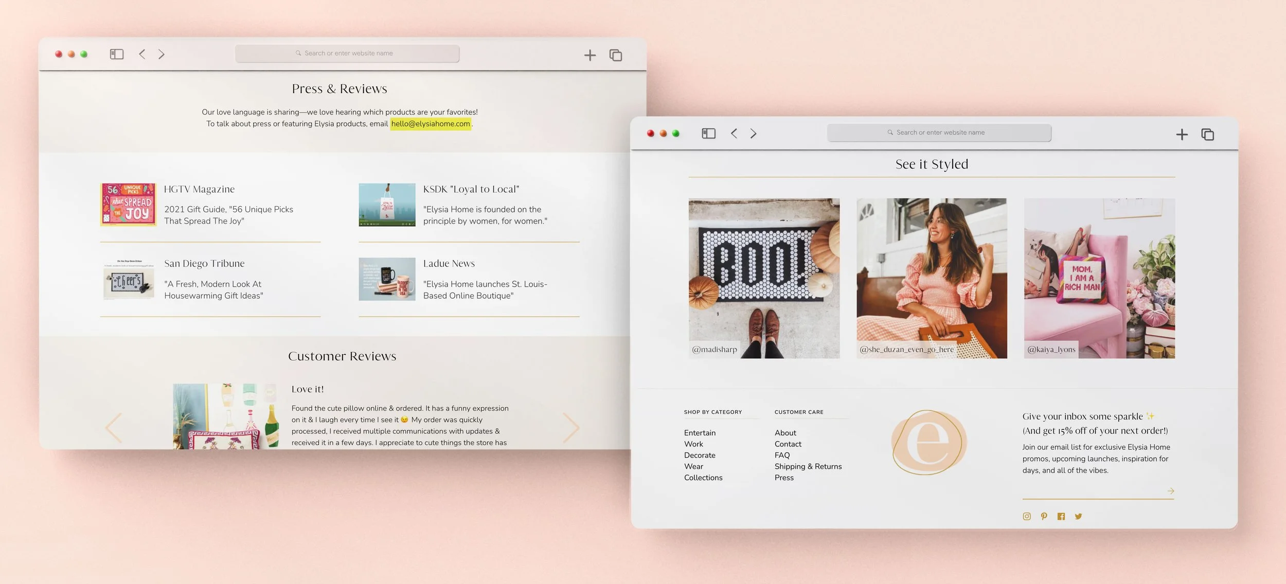 After the launch of the Elysia Home site, I continued to manage the visual content, creating Google and Pinterest ad graphics, and digital content for new product releases, campaigns, and sales.